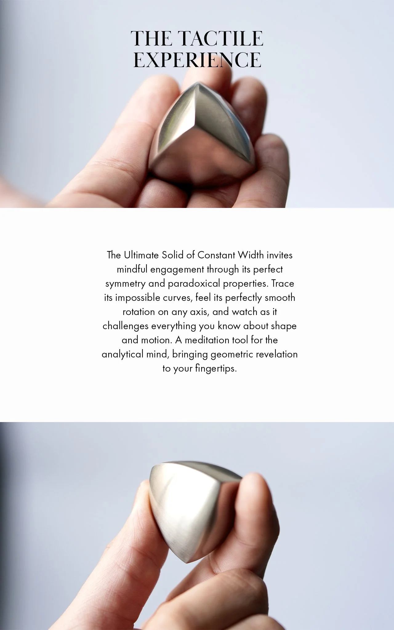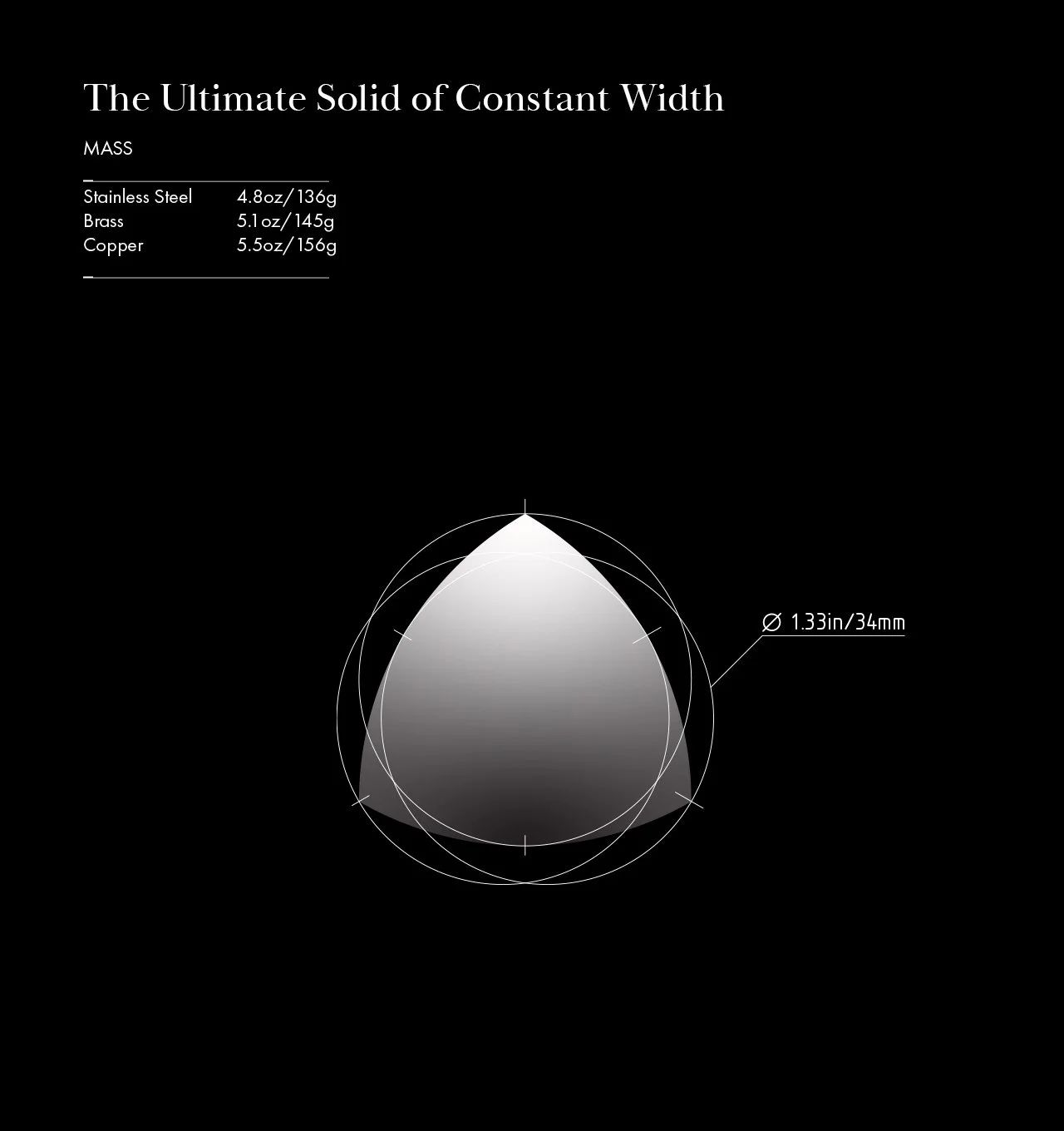 The Ultimate Solid of Constant Width is where a mathematical theorem becomes a tangible object of wonder. From the revelations of Euler to the refinements of modern geometry, this shape is the pinnacle of its kind—the only form to unite perfect constant width with tetrahedral symmetry. Precision-machined from solid brass or steel, its silent, stable roll defies expectation. No batteries, no mechanisms. Just the profound, physical proof of a paradox you can hold in your hand, a shape that remains perfectly constant no matter how it turns.